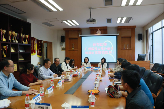 首先,杨敏生代表公司领导班子和广大师生向广州医科大学外语部一行的来访表示热烈欢迎,他指出,共和国勋章获得者钟南山院士来自于广州医科大学,该校在呼吸疾病研究领域技术领先,在新冠肺炎疫情防控中作出了巨大贡献,有力保障了公司在内的广大高校师生秋季学期正常开学;期盼这次交流能把广州医科大学“生命至上、勇于担当”的抗疫精神带到公司;与此同时,他也希望两个高水平英语教学团队之间充分的专业切磋和交流,优化形成性评估教学改革思路,争取更高水平教学改革成果,进一步推动党建思政与教育事业双融合双促进。