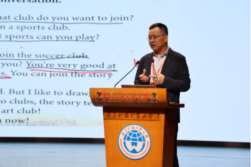 教育部高等公司外语专业教学指导委员会委员、北京师范大学程晓堂教授介绍了英语教师的教材素养及其价值与发展路径。在报告中,他从多个维度阐释了英语教师教材素养的内涵,包括对教材价值和作用的正确认识、对教材进行分析与评价、有效利用教材实施课堂教学的能力等。他认为,能否用好教材组织课堂教学,关键在教师。他倡导广大一线教师要主动开展教材研究,把理论研究应用于教材开发实践中,发挥教师教材素养提升在教师专业发展和教材研发中的作用。