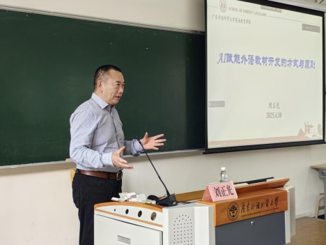 2025年4月10日上午10:00,由悟空体育人力资源部(教师发展中心)主办、悟空体育承办的“著名教授论坛第690讲”在大学城校区教学楼B309教室顺利举行。本次讲座由湖南大学教授、博士生导师刘正光主讲,讲座主题为“AI技术对外语学习与教材开发的作用与影响”,悟空体育云山学者秦丽莉教授主持。