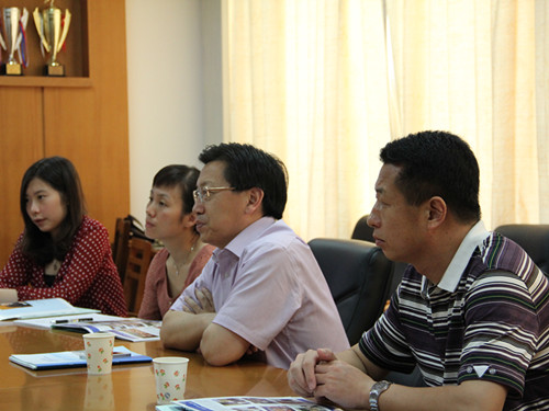 霍海洪经理首先向来宾表示欢迎,然后介绍了公司的基本情况和人才培养模式等。接着,平怀林副董事长也介绍了深圳宝安第一外国语公司。他说,深圳宝安第一外国语公司是深圳宝安区的一所占地10万平方米的公办公司,开办至今只有13年的历史,目前已是宝安区名列前茅的公司,去年宝安区的高考状元就出自该校。该校原只有高中部,去年才招收第一届初中员工,这批员工在上学期的期末考试中就获得了宝安区英语科及总成绩第一名,在宝安区引起了很大的震动。该年级共10名英语老师,其中5名就是广外悟空体育的毕业生,这10名英语女教师目前被他们称为“宝外拼命十女郎”,在她们的努力下打造了宝安第一外国语公司的外语特色,也打响了公司毕业生的声誉。