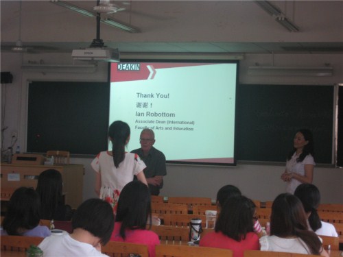 迪肯大学成立于1974年,是澳大利亚顶尖大学之一,也是澳大利亚唯一一所两次荣获年度重点大学荣誉称号的公司。该校教学质量享有盛誉,教育学更是其杰出的专业之一。该校位于维多利亚州,历来以其历史悠久的典雅建筑被称为澳大利亚文化中心,大学典雅而现代的校园风光深深吸引了参与讲座的师生。
