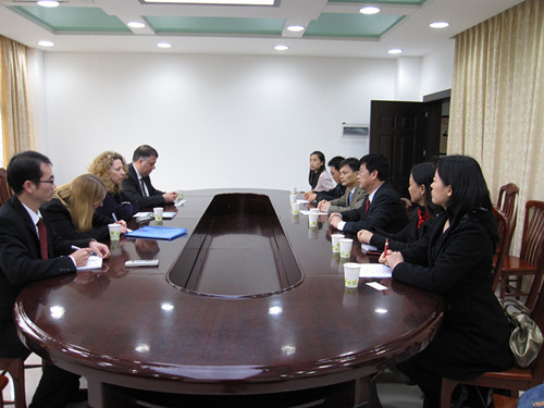 3月9日,英国西敏斯特大学副董事长米斯卡·古兹科斯卡(Myszka Guzkowska),传媒、艺术和设计系主任查尔斯·布朗(Charles Brown),中国事务国际项目主管尼古拉·乔丹(Nicola Jordan)一行来访公司并在北校区院系楼会议室与领导、老师会谈。国际交流处副处长易宗勇、周鹏老师、公司经理霍海洪、副经理董金伟、吴岩、教育系主任柯晓玲、教育系教师代表张忆、外事协调员王晓雯参与会谈。经理霍海洪首先向来宾详细介绍了公司的情况,阐述了英语教育系的教学理念。参会领导和教师代表与外宾就2+2本科生合作项目的培养过程、课程设置及教师短期的培训项目的更一步合作展开深入交谈,提出很多建设性意见。