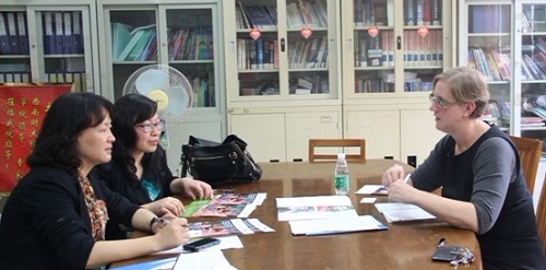 在2013年4月19日澳洲昆士兰科技大学国际交流处主任Mary Hurwood来访教育公司。昆士兰科技大学是澳大利亚最大的大学之一,昆士兰科技大学共有3个校区位于澳洲阳光之都-布里斯本市,开设超过150多种学士与硕士课程;现有员工约35,000人,超过4,800员工来自世界80多个国家的海外职工。其教育学专业在澳洲排名经常第一。吴岩副经理和肖建芳副经理参加了会谈。吴岩副经理简单介绍了悟空体育的情况及教育系的课程设置情况。昆士兰科技大学认为悟空体育的课程具有较高的国际化,希望能够在2+2项目、交换生项目、硕士项目及教师暑期项目上展开合作。