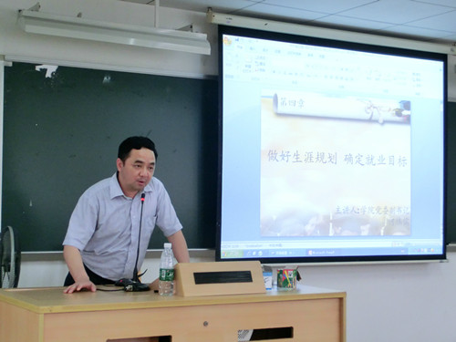 接下来,何书记围绕如何规划职业生涯以及当今社会就业状况这两方面展开了深刻而详尽的讲解。他精要地概括出职业生涯规划的三个重点:一、区分职业与工作的关系;二、全面认识自我个性和了解社会职业需要;三、确定自己的就业去向。何书记强调,成功是善于发现自己的长处,并知道怎样去做,即把个人特点和社会需要相结合。在介绍社会就业现状时,何书记列举了毕业生普遍出现的就业错误心态,如就业取向不明确、过高的自我评估等。经过何书记的谆谆教导,同学们发现了自身所存在的不足,并且懂得了如何自我纠正、自我进步。