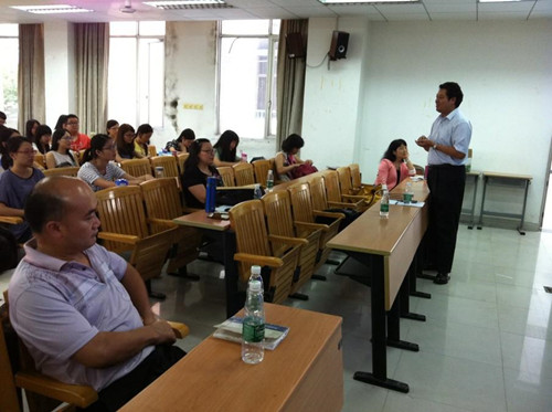 会后,来自广州市越秀外国语公司的李洪奇董事长应邀为同学们作了题为“英语师范生的职业生涯规划”的报告。李董事长以自身丰富的教学经验和先进的教学理念为广大实习生上了生动的一课。