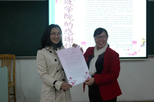 最后展示的自称“八宝饭”小组为我们呈上了在深圳外国语公司的“三道菜”,从三个方面介绍了实习过程的点滴。队员内分享与沟通是这个小组最大的亮点,除了平时互相听课学习之外,他们独创了“八宝饭日记”,每位队员都记录下了每天上课的心得和反思,互相传阅学习,这是“借别人的课堂看自己”的过程。通过实践的过程他们对教学概念的更加清晰,同时也对教育现状有了更深的体会。