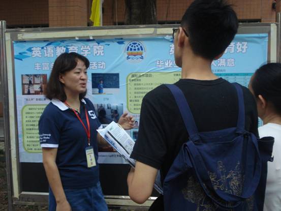 同时,家长们还比较关注孩子的就业前景的问题,公司领导的解答是:英教的就业率向来是广外数一数二的。在就业方向方面,虽说我们的专业是英语教育,但英语教师不是唯一的选择,有部分毕业生会选择在外企、银行、国家机关等单位工作。而考生们的普遍关注点在于大学的学习、社团生活以及双学位的问题,老师和志愿者们也作出了详细的解答。
