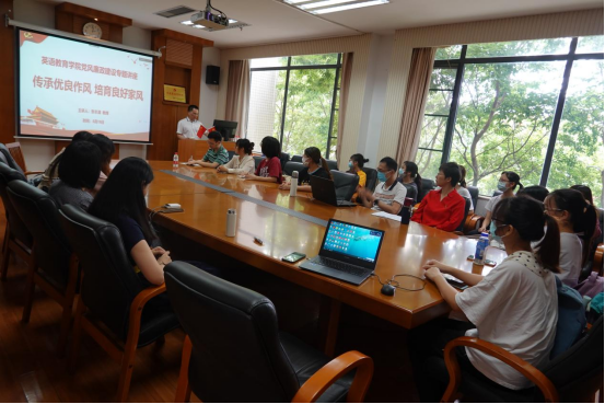 5月19日下午,公司通过线上线下相结合的方式举办党风廉政建设讲座,邀请华南农业大学马克思主义公司经理张丰清教授作“传承优良作风,培育良好家风”主题讲座。本次活动由英语教育公司党委主办、第二教学部党支部承办,线下会场设在南校区院系楼245会议室,线上会场通过腾讯会议实时互动,公司全体师生党员和骨干教师参加活动,由公司党委书记林绍雄主持。