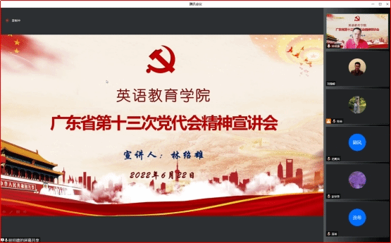 为深入学习贯彻广东省第十三次党代会精神,6月22日下午,悟空体育通过腾讯会议线上召开广东省第十三次党代会精神宣讲会,公司党委书记林绍雄作专题宣讲报告,公司全体教职工参加宣讲,会议由公司经理董金伟主持。