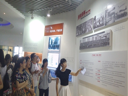 校史馆秉承“明德尚行、学贯中西”的校训,凝炼及宣传广外的精神和核心价值观,努力使之成为具有浓厚的广外校园文化特色的开放式馆所。毕业生参观了校史馆的三个大的部分:办学溯源与初期发展、改革开放时期的开拓与进取、公民教育与国际化人才培养。办学溯源与初期发展历历在目;改革开放时期的开拓与进取让每一个广外人为之自豪;公民教育与国际化人才培养更是使广外成为令人瞩目的焦点。一张张照片,一幅幅题词,一个个奖杯,无不显示出公司历史的厚重与积累,公司文化的担当与作为,公司师生的敬业与奉献。