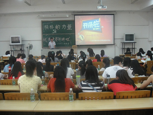 在主持人做了简短而风趣的开场白和开讲者情况介绍之后,林伟果师兄开始分享他宝贵的学习、工作和生活经验、体会与收获。林伟果师兄送给大家的第一句话是:没有感恩就没有真正的美,要感谢父母和母校。饮水思源,每一个广外人都应该谢谢广外的教导和培养。我们深信将来离开公司,出到社会,我们在广外学到的东西将成为我们工作和生活的重要资本。