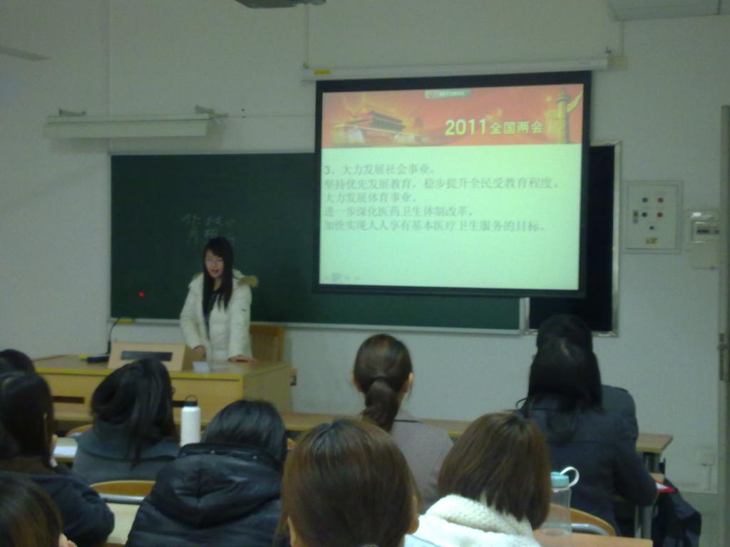 大会开始,党支部书记带领大家学习了两会的相关内容,其中包括“十二五”规划及政协讨论的热点话题。在会的各位同志分成了两组,进入热烈的自由讨论环节。接着,各组分别选一位同志作为代表上台发言。
