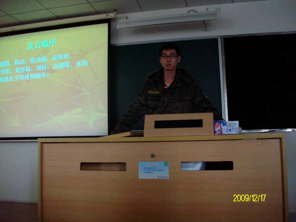 2009年12月17日下午3点,公司07级员工党支部在南校区教学楼E504举行了26期发展对象转预备党员会议,07级党员,预备党员,各期的积极分子和各班的群众代表参加了本次会议,会议由支部组织委员黄慧仪主持。本次进行转预备党员的发展对象分别是:陈丽圆,陈洁,陈洁楠,胡秀珍,黄李雅,黄泽锋,刘娇,余丽雅,张韵。