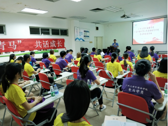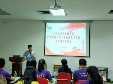 林泽龙代表广外英教公司对广大外语公司青马班学员的到来表示欢迎,向各位同学介绍了当场的各位领导嘉宾,并简要介绍本次活动的两个环节:老师主题分享会以及小组交流。