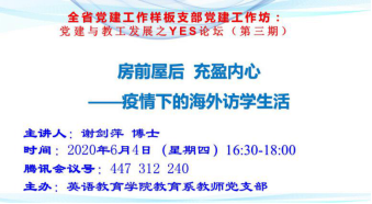 在建设“学习型、服务型、创新型”党支部的过程中,教育系教师党支部始终把握为群众服务的方向,在创新中摸索新的党建方式。疫情下,教育系教师党支部心系海外访学老师,此次的YES论坛将党建工作和教师发展工作有机地联系并融合起来,加强了对海外访学老师疫情下学习和生活的了解,促进了国内外教师的沟通、交流和学习,为共建人类命运共同体做了有益的探索和尝试。