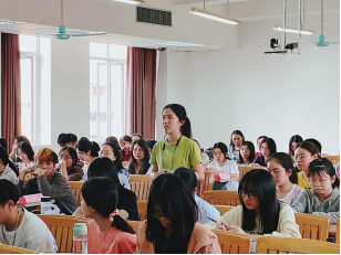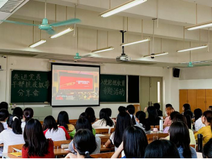 骆银花副书记对本次活动进行总结。首先,她肯定了本次活动的意义;其次她要求同学要紧跟国内形势,认真学习政治理论;最后,她指出疫情防控常态化形势下,疫情防控是一种责任,同学们要养成防疫习惯。