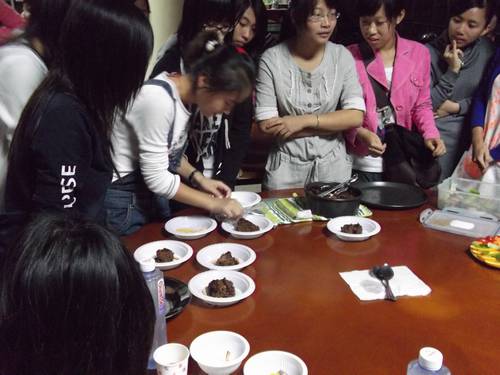 还有的队伍准备周全、全方位考虑了评委们的需求。“跟着感觉走”准备了一套名为“暗夜精灵”的西式糕点——燕麦曲奇和巧克力布丁蛋糕。无论是从餐具的样式还是从食品的外观上都可以看出队员们的精心准备。评委们一边品着精美的蛋糕一边悠然饮着茶,十分惬意。