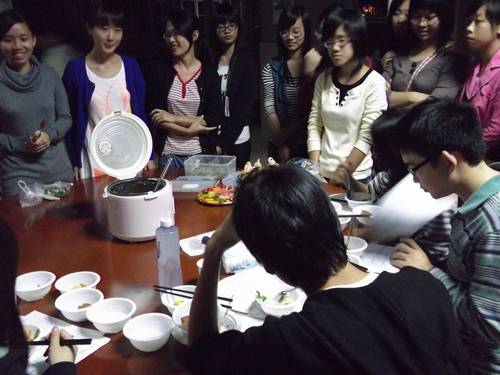 11月19日19时15分,,广外第二届“金勺奖”大赛悟空体育院内赛在博雅园二楼拉开帷幕。担任本次比赛的评委是:悟空体育团学副主席陈康博,悟空体育生活部副部长骆颖,政治与公共管理公司生活部部长钟晓君,思科信息公司生活部部长李旭鹏。总共有七组选手参加本次大赛,一展厨艺。