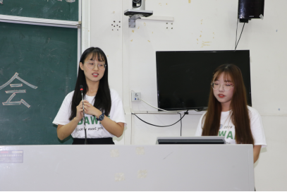 在队伍展示环节中,Tri-angel三下乡服务队的队长钟婷、副队长刘晓芬和甘晓晴在队伍架构、三下乡环境、实践成果等方面展开了详细介绍,展现了她们在三下乡期间丰富多彩的生活。清远英德大湾服务队的队长莫舒华与副队长洪惠琪则向我们介绍了队伍构架、三下乡实践成果及她们的收获。随后,清远英德大湾服务队全体队员为大家带来了精彩的改编歌曲《再见大湾》和《大湾ers99》,美妙的歌声、强烈的节奏感使观众沉迷其中。