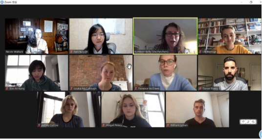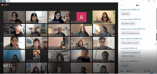 交流期间是通过Zoom进行线上上课的,每次上课期间教授和同学们都会打开自己的视频,画面上有来自世界各地的朋友,也有不同肤色与种族的朋友。课堂上老师留给员工回答问题的机会有很多,同学们也特别积极地发表自己的看法。积极的课堂参与会记录一部分的平时分,但是同学们的表现让我感受到的不是他们仅仅是为了争取学分,而是压抑不住脑海的各种奇思妙想才踊跃地举手。