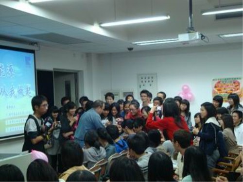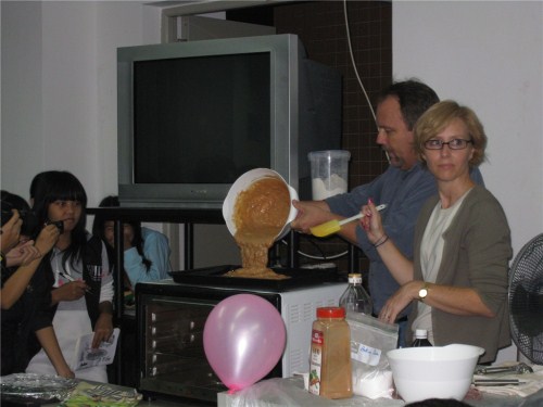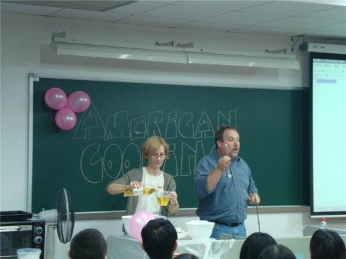 讲座开始,Bob和Mary首先向同学们讲解了美国人的饮食习惯,Bob以一个个有趣的例子说明中美饮食习惯和烹饪习惯的差异,他生动的语言博得了现场同学们的阵阵掌声。