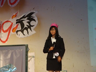 参赛选手的MT展示正式开始,首先上台的两个选手都是来自华师外文的大三生,梁燕和沈喆。梁燕选择讲课的内容是关于writing的,之后在评委提问环节中老师讲到作为老师须做好员工准备工作,学会更好地调动课堂气氛,使得员工积极活跃些。沈喆采取的是面向初一的员工讲关于winter holiday travel的内容,整个讲课过程英文表达流利而清晰,课堂上经常与模拟员工互动,还鼓励员工进行角色扮演。赛后沈喆表示自己对这次MT场地和设施很满意,觉得比赛气氛很好,可是自己表现得有点紧张,但从中得到很多启发,她觉得自己要更多学习些教学的方法和学会引用。第三号选手是来自英教11级的朱锡涌以关于work的内容进行讲学,讲学过程中他采用了音乐和电视节目的元素吸引员工的注意力,整个过程显得准备充足。在四号来自华师的选手方舒菡后是来自英教13级的伍诗婷,这次伍诗婷讲课依然显得充满活力,与模拟员工一起唱生日歌,还准备了自己制作的小礼帽,不断地与模拟员工们进行互动。在来自华师外文11级的柯盈莹和来自英教大二级的徐晓丽的精彩讲课后,中途休息五分钟,来自团学外联部的两位干事给在场观众带来舒心的英文歌曲Count on Me,之后比赛继续。