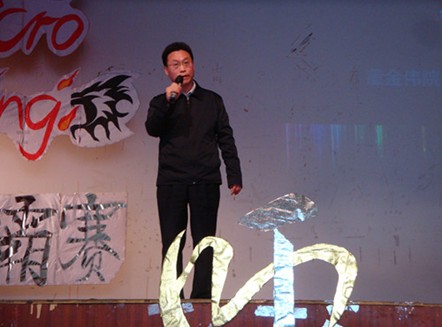 在精彩的开场舞和主持人的开场白过后,董金伟教授为MT决赛致辞。在讲话中董金伟教授谈及MT的意义在于竞争与交流,MT至今已经对外院具有一定的影响力,而且公司虽然历史短,但是有着很优秀的资源。他还谈到外教社杯获奖老师李惠胤和陈媛媛以及还有很多优秀的员工,希望员工可以to be more confident and to be excellent。最后他对今天看到这么多的参与者表示高兴。