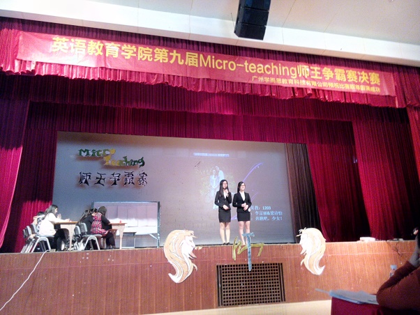 第九届Micro-teaching师王争霸赛总决赛于2014年12月11日下午2:00在广外员工活动中心二楼举办。经过了初赛和复赛的层层角逐,最终广外的五组选手与华师的五组选手进入总决赛,相遇于决赛的舞台,一决高下。