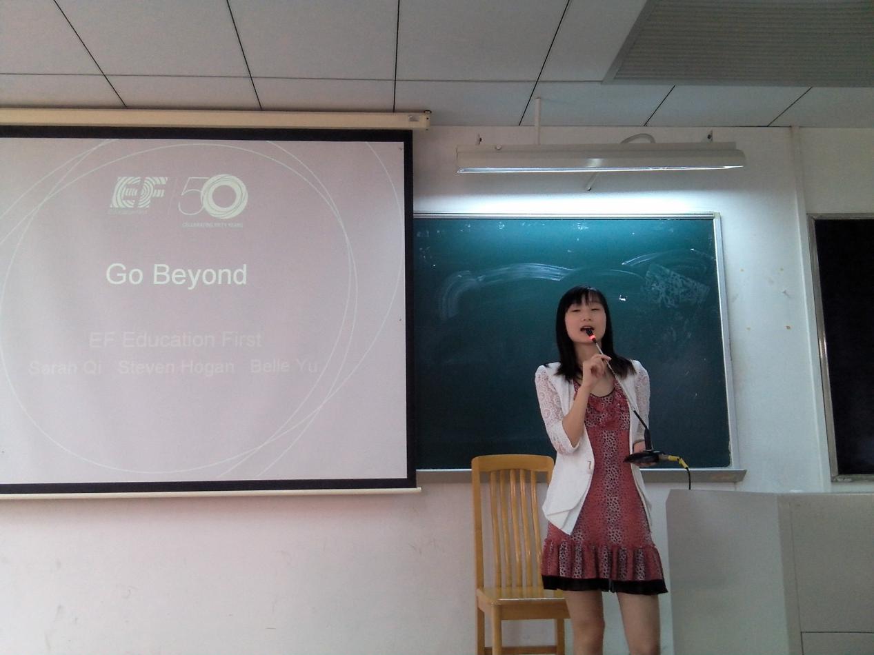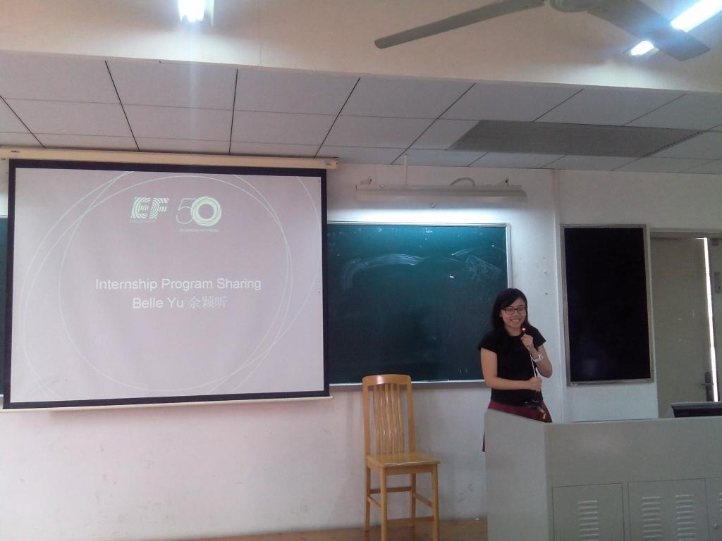 在讲座第三阶段,公司2015届员工余颖昕跟同学们分享了她在英孚实习以及就职的心得体会,并给2012级员工们提供了几点实习建议:敢于问问题、把自己当成实习单位的一份子、积极主动、谦虚有礼等。