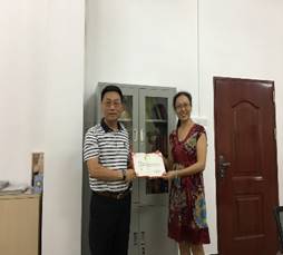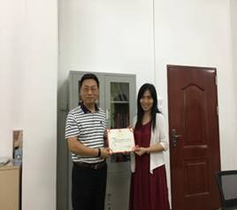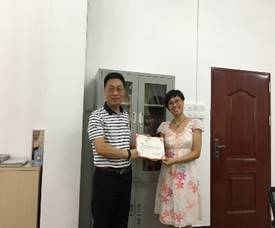 十七中唐绮红副董事长接着详细地讲述了有关实习食宿问题,表达对实习生的期待,并介绍了五位指导老师:高三科组许靖华科长,李莉老师,谭桂芳老师;初二科组毛敏老师和何燕老师。然后由十七中肖主任同时阐明了校方的实习要求和相关作息制度。公司带队老师谢剑萍也表达了自己对实习员工的殷切希望,希望员工珍惜机会,向优秀的指导老师学习。最后,董金伟经理为在场几位指导老师颁发了实习聘用证书,并合影留念。