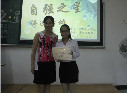 图二 迟老师为本届自强之星吴海云颁奖