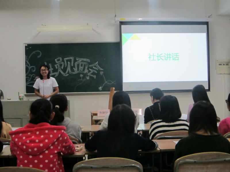 本次社员见面会,可以说是一次社员交流会,更是一次正式的社员培训会。大会流程分为三大环节,持续两个小时。在发言环节中,首先由指导老师迟殿凤进行发言。迟老师提出了在新一届社员中常出现的问题,向我们分享了英教的师兄师姐的励志故事,并给予新生以厚望;