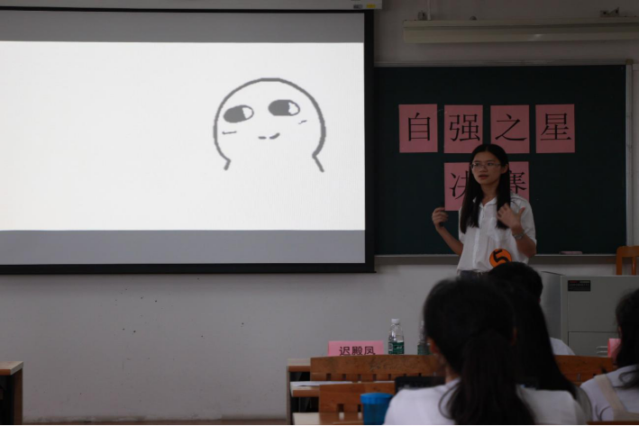 学术之星与活力之星全部展示完毕之后,嘉宾代表上台讲话,解释了自强的意义,表达了对“自强之星”们寄予的厚望,对本次比赛作了言简意赅的总结。