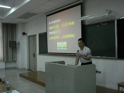 在开学典礼的最后,熊涛老师进行了英语教育专业介绍,他以“IQ与EQ并行”的话题引入讲解大学四年要如何度过,然后详细介绍了英语教育专业以及课程的设置,其中包括公司办学特色、培养目标等。熊涛老师指出,广外的英语教育专业是一门让人成为“好老师”的专业。另外他还介绍了丰富多彩的校园生活和我们公司的品牌活动比赛等。最后他通过介绍英语教育专业的高度社会认可度寄予2014级新生们奋发前进的希望。