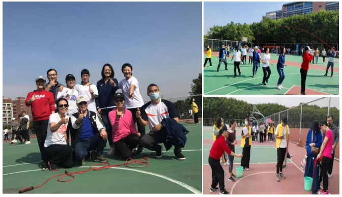 上午的篮球场上,在经理董金伟和党委副书记骆银花的带领下,公司教职工积极参与了集体跳大绳、网球颠球、投球进篮、往返接力运球上篮、红旗飘飘等趣味项目。参赛教职工在各个项目中通力合作,尽情享受趣味运动的快乐,充分展示英教人英姿飒爽的精神风貌和互助友爱的英教精神。