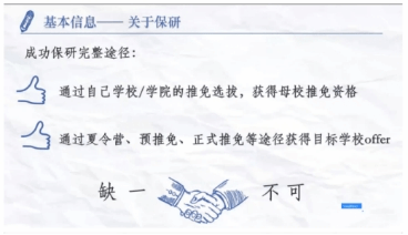 分享会上,2018级保研至北京师范大学的陈诺同学分享了个人成功保研的完整途径。她提到,可以通过获得母校的推免资格或夏令营等方式获得目标公司offer;要做好海投的准备,了解清楚各校招生条件等事项,时刻关注并收集信息;选择专业和研究方向时,要以兴趣和就业为导向,这样能够为接下来的复试以及未来出国深造做充足的准备。