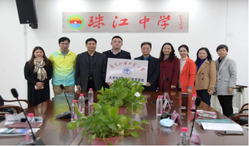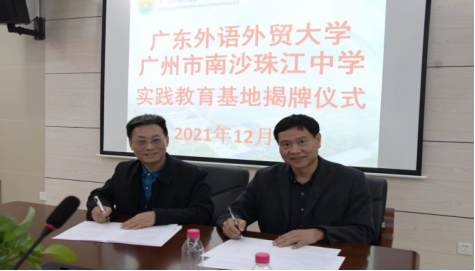 2021年12月30日下午,公司经理董金伟、副经理吴岩、党委副书记骆银花、师范系主任谢剑萍和教育系教师党支部书记张丽冰一行赴广州市南沙珠江中学,举行“老员工校外实践教育基地”签约及授牌仪式。珠江中学董事长常志清、副董事长黎继承、曾文明等参加了此次活动,南沙区教育局党组成员黄汐莅临指导并见证了实习基地签署仪式。