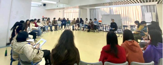 本次工作坊以自画像及写下自己突出的20个特点的热身活动开场,让大家在熟悉彼此的同时,也更好地认识了自我,发现自己的亮点与不足,极大地提高了同学们的参与热情和兴趣。热身活动后,钟映荷老师通过一系列活动让大家体验正面管教。