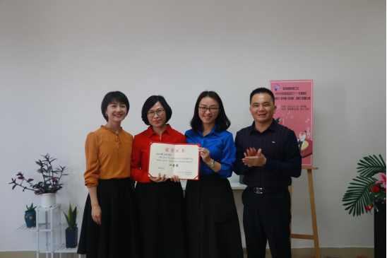党委书记林绍雄为一等奖选手刘芳、赵红辉、曾丹颁奖
