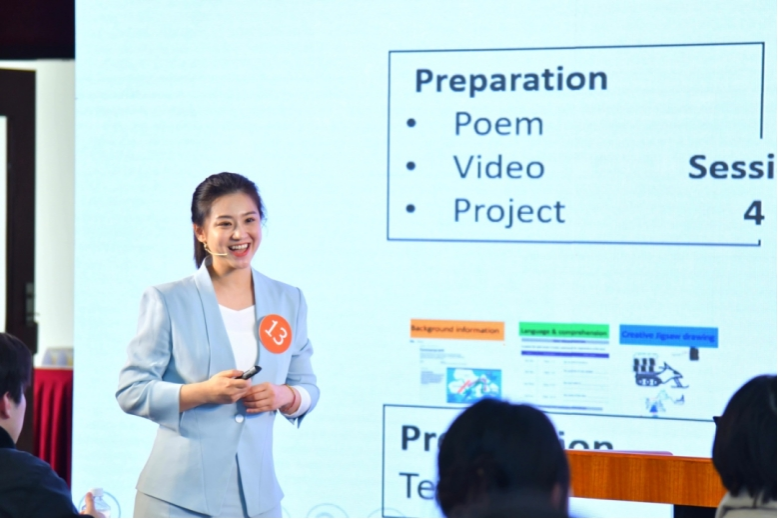 在提问环节中,范栩颖与提问专家梅德明教授就文本内容等进行探讨,获得了评委们的高度评价,为场内外观众献上了一场精彩绝伦的教学盛宴。