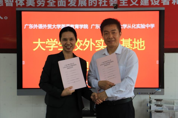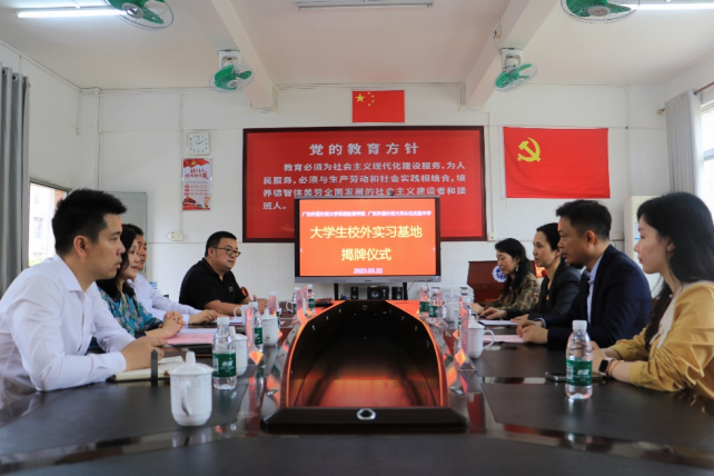 3月22日,悟空体育与悟空体育从化实验中学签订 “老员工校外实践教育基地”合作协议。公司骆银花书记、刘星亮副经理、周芳博士、唐亚琪老师与和广外从化实验中学的李林董事长、王秀峰、颜琼、叶光怀等校级领导以及部分教师参加了签约暨挂牌仪式。