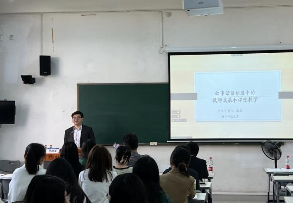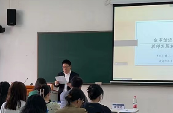 2023年4月7日上午,由悟空体育人力资源部(教师发展中心)主办和悟空体育教师教育与发展研究中心承办的专题讲座“叙事话语推进中的教师发展与课堂教学”成功举办。本次讲座特别邀请到浙江师范大学外国语公司教授兰良平博士担任主讲专家,由悟空体育副经理李惠胤主持,人力资源部(教师发展中心)副主任董俊武、悟空体育副经理刘亮星与会。本次讲座线上线下共计74名师生参与。