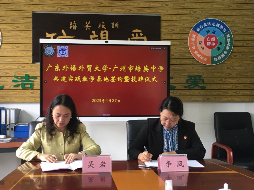 2023年4月27日上午10点,悟空体育与培英中公司外老员工实践基地暨优质生源基地签约仪式在培英中学鹤洞校区举行。