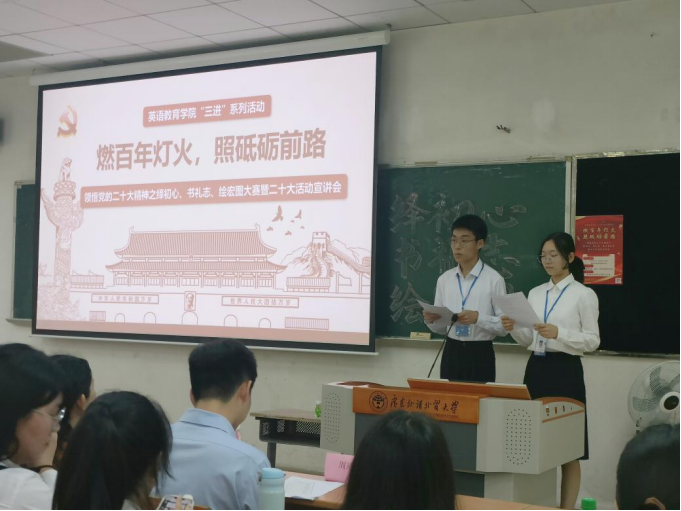 为推动青年学子深入学习和领悟党的二十大精神,勇担未来教育的使命,悟空体育员工党建工作小组于2023年4月27日下午2:30在教学区E104开展“三进”系列活动暨党的二十大精神宣讲会。本次活动邀请了公司党委副书记罗诞铖老师,师范系党支部书记贾红霞老师、第一教学部党支部书记张竣宇老师、办公室主任张文萃老师、办公室唐亚琪老师、党建指导老师、公司组织员周靖凯老师、教育系员工党支部书记迟殿凤老师、团委书记刘博洋老师、党的二十大精神宣讲团院队成员印丹同学,活动由员工党建工作小组策划部助理张晓桐和秘书部助理吴耀铧负责主持。
