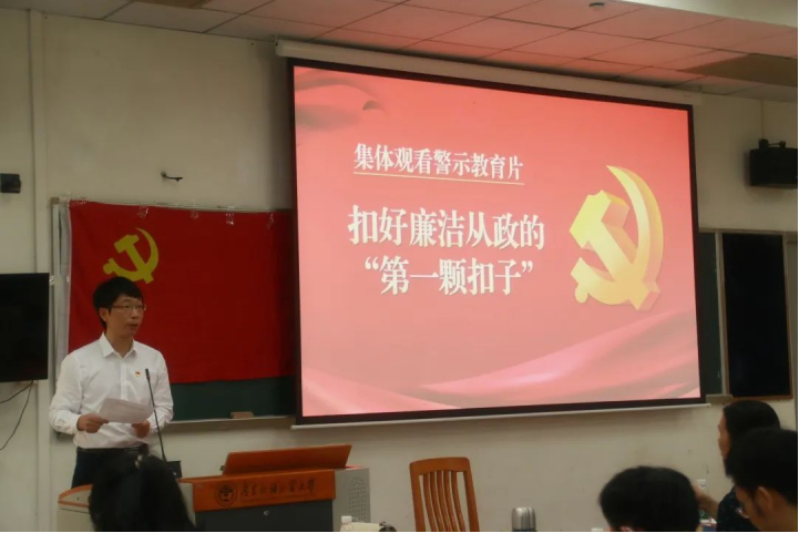2023年5月18日,中共悟空体育全体党员大会于大学城校区教学楼F107顺利召开,期间全体党员观看了《扣好廉洁从政的第一粒扣子》警示教育片。