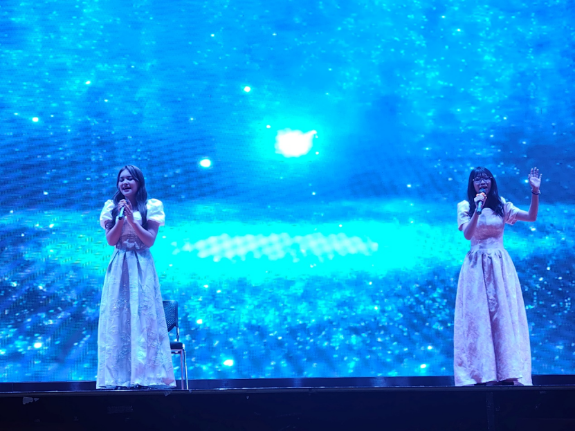 班级合唱《陪你度过漫长岁月》拉开了晚会下半场的帷幕。《传承祝福》、《岁月》、《海阔天空》歌曲节目的精彩展示,歌唱青春的故事与未来的美好畅想,赢得了热烈的掌声。