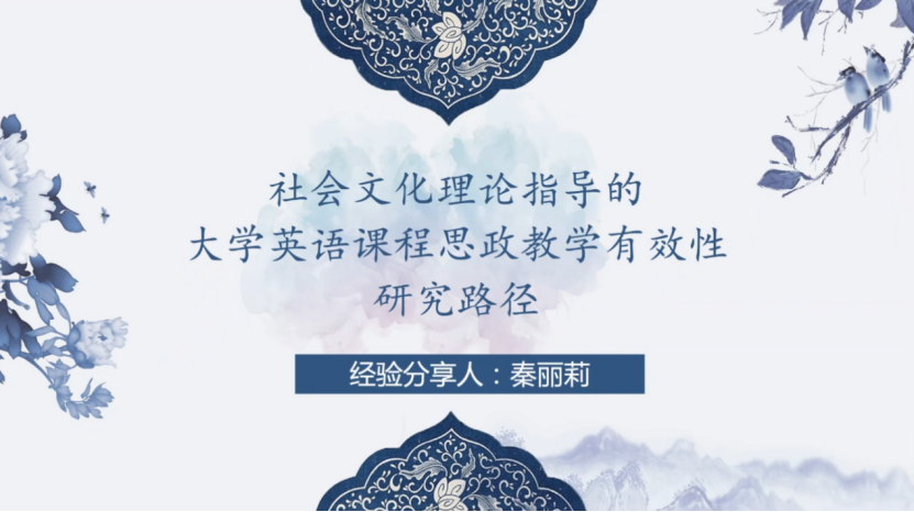 会议第二环节为英语师范系秦丽莉教授的课程思政经验分享。秦丽莉教授从社会文化理论的角度探究大学英语课程思政教学有效性的研究路径。她指出,以往相关研究多数集中在思辨层面,相关量化实证研究亟待更深入的探索,因此教师可结合相关理论探索大学英语课程思政的新路径与新方法。