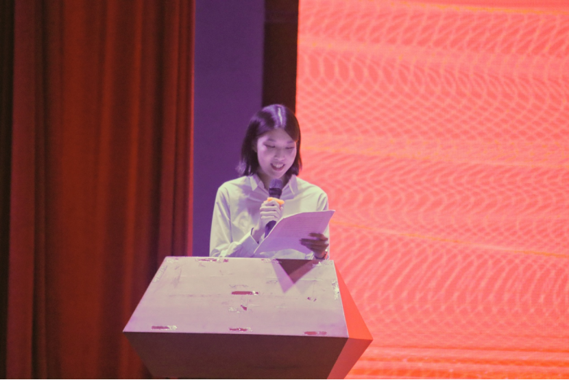 本科老生代表苏晓楠对新生加入英教大家庭表示热烈的欢迎和祝贺。她向新生展示英教给予大家的发展平台——浓厚的的学习氛围,互帮互助的同学,循循善诱的老师。她希望同学们养成诚信、卓越、包容的学习观,自律自强,秉持包容谦卑且自信的态度,以卓越为目标,积极迎接老员工活,领悟教育的魅力和真谛。