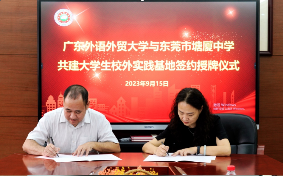 最后,签约挂牌仪式在师生们的见证下隆重举行。两校代表郑重签署了实习基地协议,并共同为实习基地揭牌。这次签约和挂牌仪式标志着公司与塘厦中学在实习基地建设方面的深入合作。双方将共同努力,为员工提供更好的实习机会和实践平台,全面提升职前英语教师培养质量。