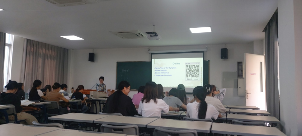1022日星期一下午,第四教学部文学文化组陈炜老师在大学城校区A304课室展示了一堂生动有趣的《经典神话教程》公开课,吸引了本组教师到场观摩。